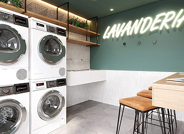 • Piscina adulto • Piscina infantil • Solário, Mini quadra esportiva • Salão de festas • Salão de jogos • Fitness • Brinquedoteca • Espaço gourmet (churrasqueira e forno a lenha) • Playground • Espaço pet • Lavanderia coletiva.